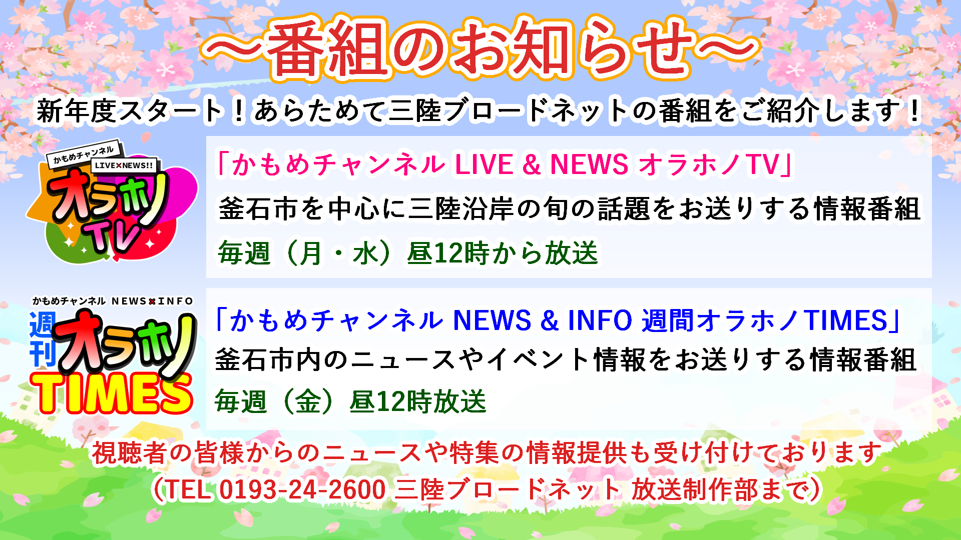 - 2026年3月26日 番組表 2026年4月 かもめチャンネル番組表